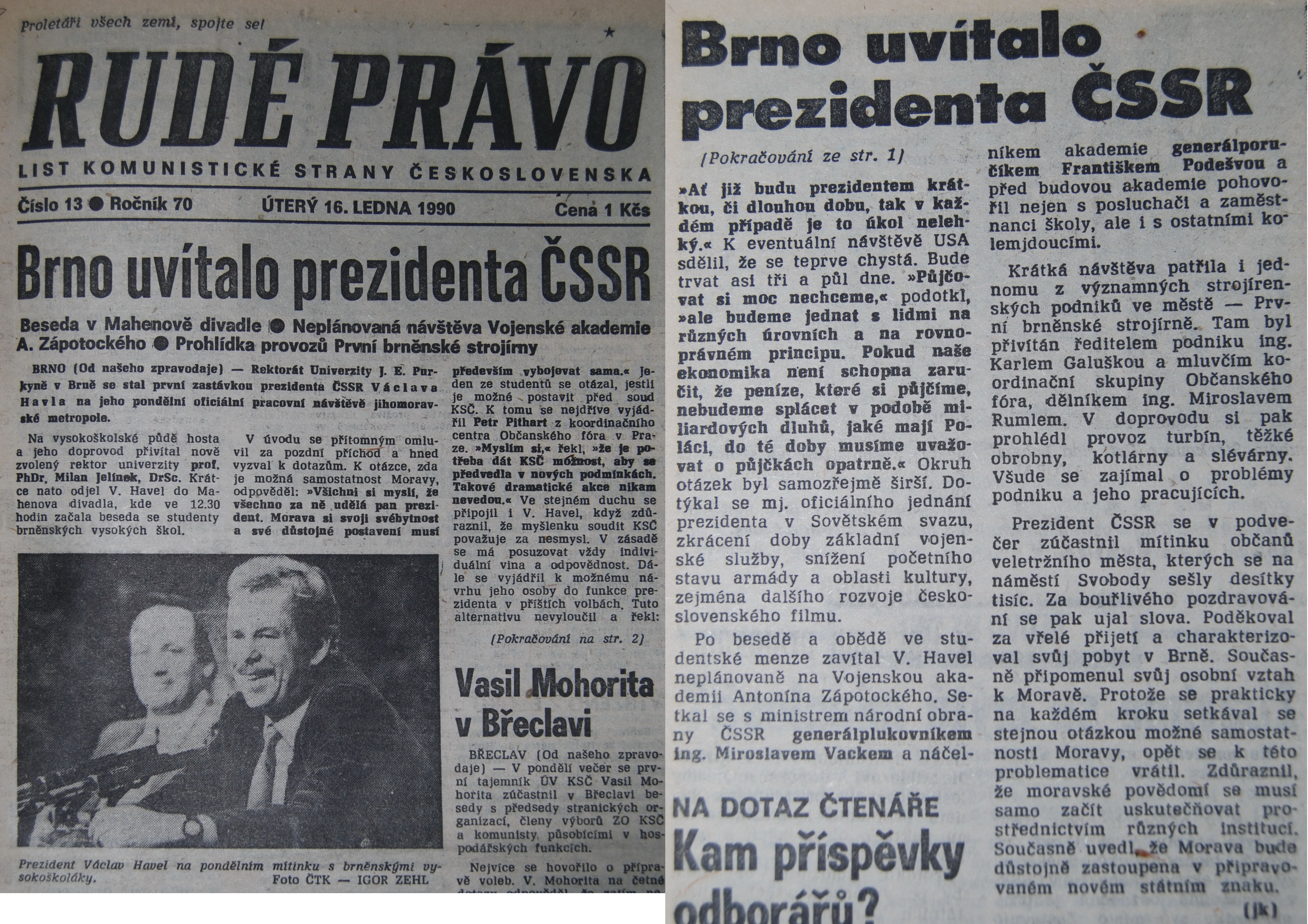 | 29. 9. 2013, 21:53 | Rude Pravo, utery 16. ledna 1990 - Brno uvitalo prezidenta CSSR.jpg (soubor) | 2,45 MB | Kirk | Archivní výtisk Rudého Práva, vydaný v úterý 16. ledna 1990 - článek "Brno uvítalo prezidenta ČSSR" | 1 | |
