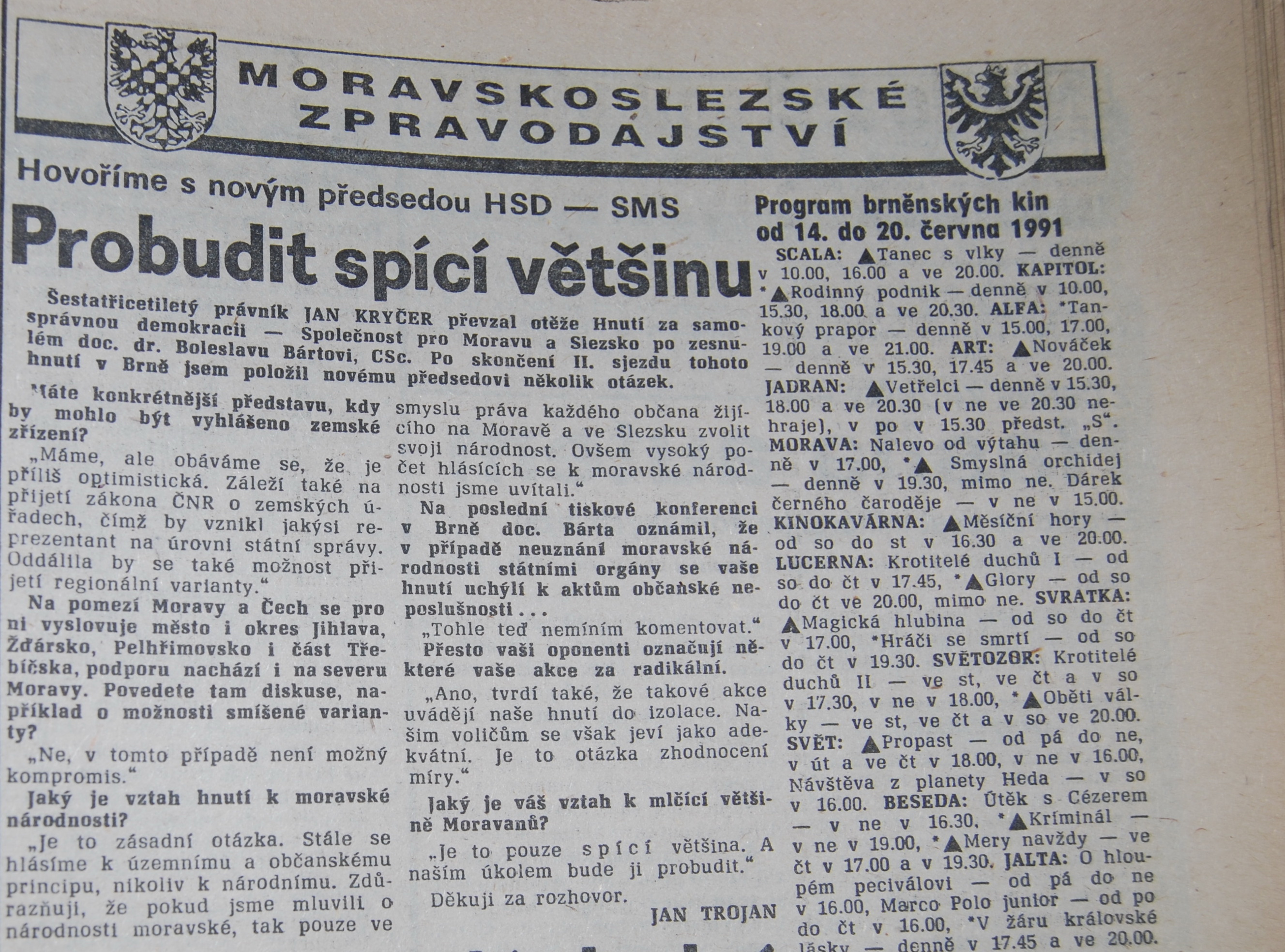 Z archivního výtisku Rudého Práva, vydaného 12. června 1991